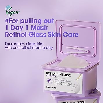 SOME BY MI Retinol Intense Daily Mask - 30 Sheets, 11.8Oz - Mild Korean Retinol Vegan Face Sheet Mask for Glass Skin Routine - Skin Texture, Elasticity and Aging Sign Care - Korean Skin Care
