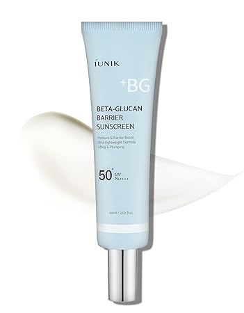 IUNIK Beta-Glucan Water Barrier Moisture Daily Sunscreen Matte & No White Cast SPF 50+ PA++++ Vegan Lifting & Plumping Moisturizing Daily Sun Cream for Dry Oily Sensitive Skin Korean Skincare