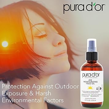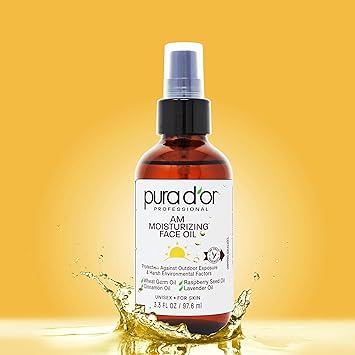 PURA D'OR 3.3 Oz ORGANIC AM Moisturizing Face Oil - Morning Glow Hydrating Skincare -Lightweight Moisturizer for Glowing Skin - All Natural, Vegan, Paraben-Free - Women & Men