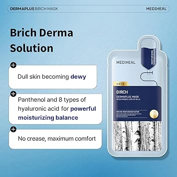 Mediheal Dermaplus Birch Mask (10 counts) - Daily Vegan Mask for Moisturizing Skin with Panthenol & Hyaluron, Korean Self Skin Care Sheet Mask