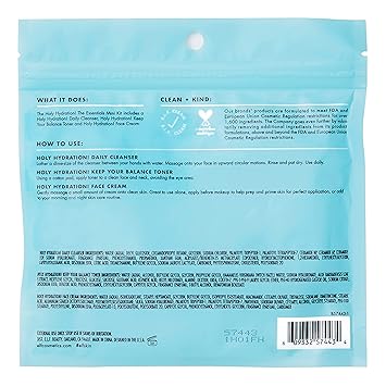 Cleanse, balance, and moisturize your skin to happily hydrated perfection with this clean skincare trio. Take your complete routine on the go with this skincare mini kit, which features a cleanser, toner, and face cream from our best-selling Holy Hydration! collection. When used all together, you’ll give your skin a boost of skin-loving ingredients like Hyaluronic Acid, Niacinamide, and Peptides, plus essential moisture for a healthy, hydrated complexion.
