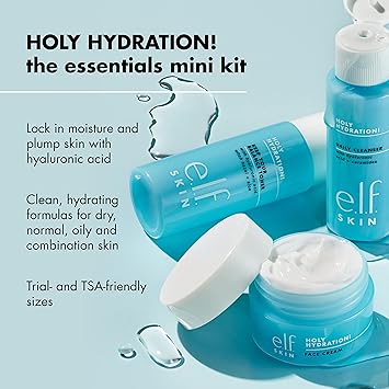 e.l.f. Skin Holy Hydration! The Essentials Mini Kit, Cleanser, Toner & Moisturizer for Hydrated & Balanced Skin, TSA-Friendly Sizes