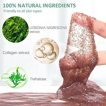 - All NATURAL INGREDIENTS: Natural seaweed collagen mask ingredients are safe (LESSONIA NIGRESCENS extract, Collagen extract, Trehalose). Fragrance-Free, Paraben-Free, Oil-Free, Dye-Free, no harm and no irritation to the skin
