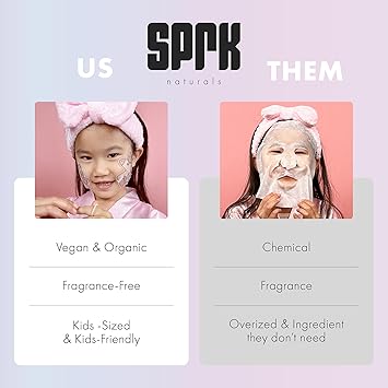 - VEGAN & ORGANIC KID-SIZED MASKS: Specifically designed for sensitive skin, our pure cotton skin care mask is perfect for children aged 4 and up. This kids face mask hydrates and soothes making skincare a delightful experience and safe for everyday fun.