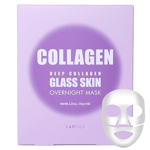 LAPCOS Deep Collagen Glass Skin Overnight Mask - Korean Skin Care Mask w/Rose PDRN, Vegan Collagen & Hydrogel Sheet - Hypoallergenic Firming Collagen Face Mask Sheets (4 ea, 1.23 oz)