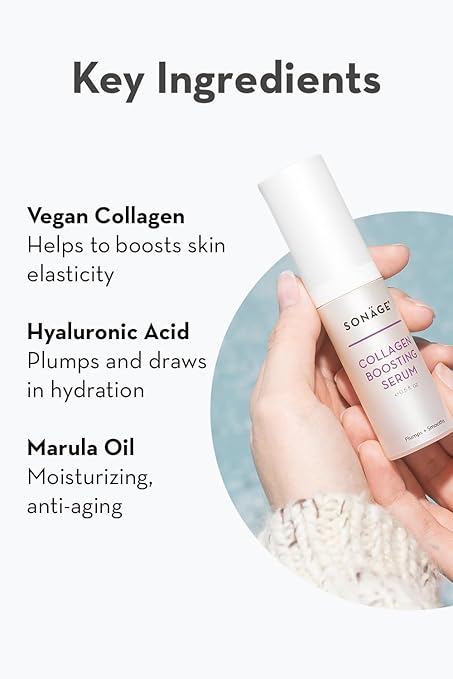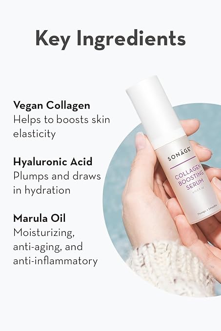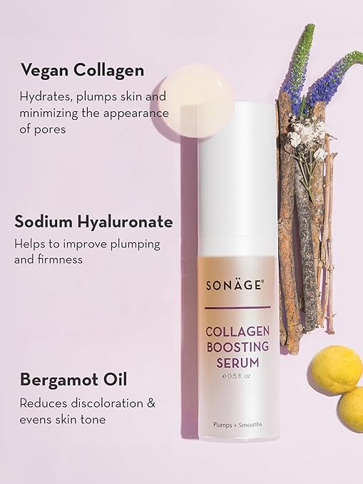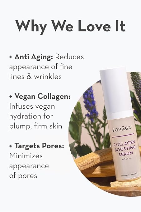 Sonage Collagen Boosting Serum: Vegan Anti-Aging Face Serum | Plumps, Smooths, Minimizes Pores, Wrinkles