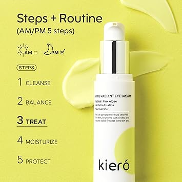 Kiero Pure Radiant Eye Cream - Lightweight & Fast-Absorbing Eye Crea for Puffiness, Bags Under Eyes & Dark Circles - Vegan, Firming Eye Moisturizer with Niacinamide & Centella Asiatica (0.85 fl oz)