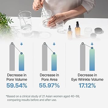 - 3-IN-1 SOLUTION (PORE, WRINKLE, BRIGHTENING): Clinically proven to reduce pore volume by 59.54% after a single use. Targets enlarged pores, fine lines, and uneven skin tone simultaneously for a smoother and more radiant complexion.