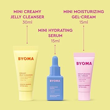 BYOMA So Hydrating Set - Barrier Repair Skincare Set - Creamy Jelly Cleanser, Hydrating Face Serum & Ceramide Face Moisturizer for Dry Skin - Anti Wrinkle, Alcohol Free Skin Care - 30ml, 15ml, 15ml
