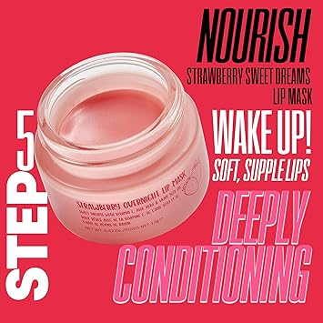- STEP 5: NOURISH - Strawberry Sweet Dreams Lip Mask - Wake up to SOFT, SUPPLE LIPS with this deeply conditioning overnight lip treatment.