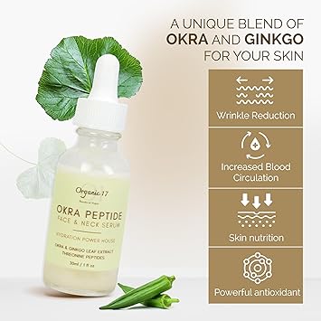 Okra Peptide Face & Neck Serum - Hydrating Anti-Aging Serum with Gingko Leaf Extract & Collagen-Boosting Peptides for Youthful Skin - Vegan & Cruelty-Free Skincare - 30ml