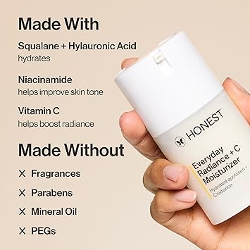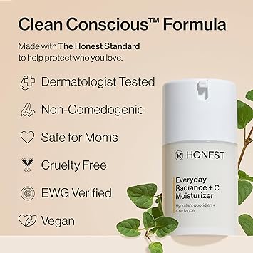 Honest Beauty Everyday Radiance Vitamin C Lightweight Moisturizer | Brightens + Improves Skin Tone | Gentle for Sensitive Skin, Fragrance Free, Vegan | 1.7 fl oz