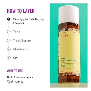 At Good Molecules, we want you to feel and look your best! Our exfoliating powder was created to give you a brighter more balanced skin tone, while at the same time soothing, softening, and bringing deep nourishment. While results are immediate (and of course, it can easily be added to the occasional facials night) this product can be used3-4 times weekly and is a wonderful addition to your regular skincare routine