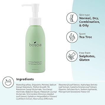 boscia Purifying Cleansing Gel - Vegan, Cruelty-Free, Natural and Clean Skincare | Daily Natural Purifying Deep Cleansing Gel Face Cleanser, 5 fl oz