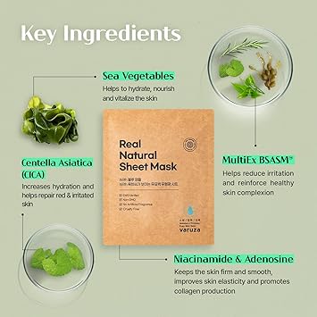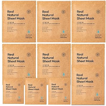 varuza] Real Natural Sheet Mask - EWG VERIFIED, Vegan Face Mask for Hydration, Non-GMO, No Artificial Fragrance, Made in Korea (5 PACK, BLUE AMPOULE)