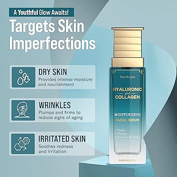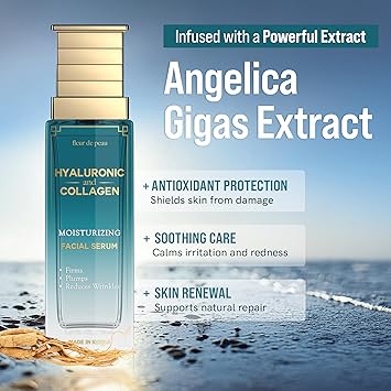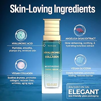 Fleur De Peau Hyaluronic Acid Serum For Face with Collagen - Dermatologist Tested, Anti-Aging, Ultra Hydrating, Firming, & Smoothing Korean Skin Care - 95% Natural, Clean Beauty, Vegan - 1.69 FL. Oz