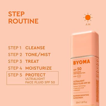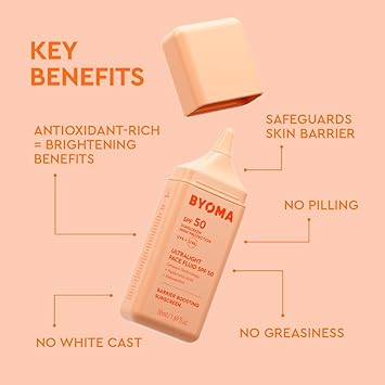BYOMA SPF 50 Face Fluid - Ultra-Lightweight Facial Sunscreen for All Skin Tones - Luminous Glow, No White Cast - SPF Moisturizer Strengthens Skin Barrier - 1.69 fl.oz