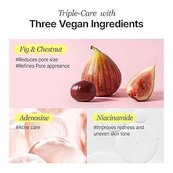 - Contains 8 plant-based extracts including fig and chestnut to control sebum, reduce excess oil and tighten sagging pores.