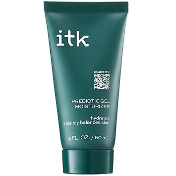 ITK Prebiotic Gel Moisturizer for Acne-Prone and Oily Skin helps hydrate and energize skin with this super-nutritious and replenishing moisturizer. The nourishing oil-free, prebiotic formula has niacinamide and squalane to feed your skin’s microbiome, which helps keep it balanced and healthy looking and cucumber extract to help calm and soothe skin. Paraben sulfate free. Vegan cruelty free. Synthetic fragrance free. Recyclable box bottle. Dermatologist tested.