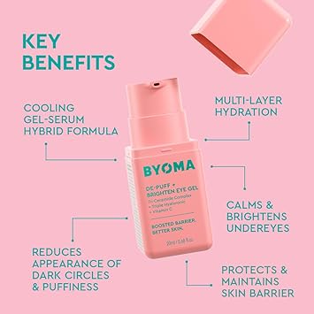 BYOMA De-Puff + Brighten Eye Gel - Lightweight Gel Eye Cream for Dark Circles, Puffiness & Wrinkles - Under Eye Cream With Hyaluronic Acid & Vitamin C - Barrier Repair Skincare - 0.68 fl. oz