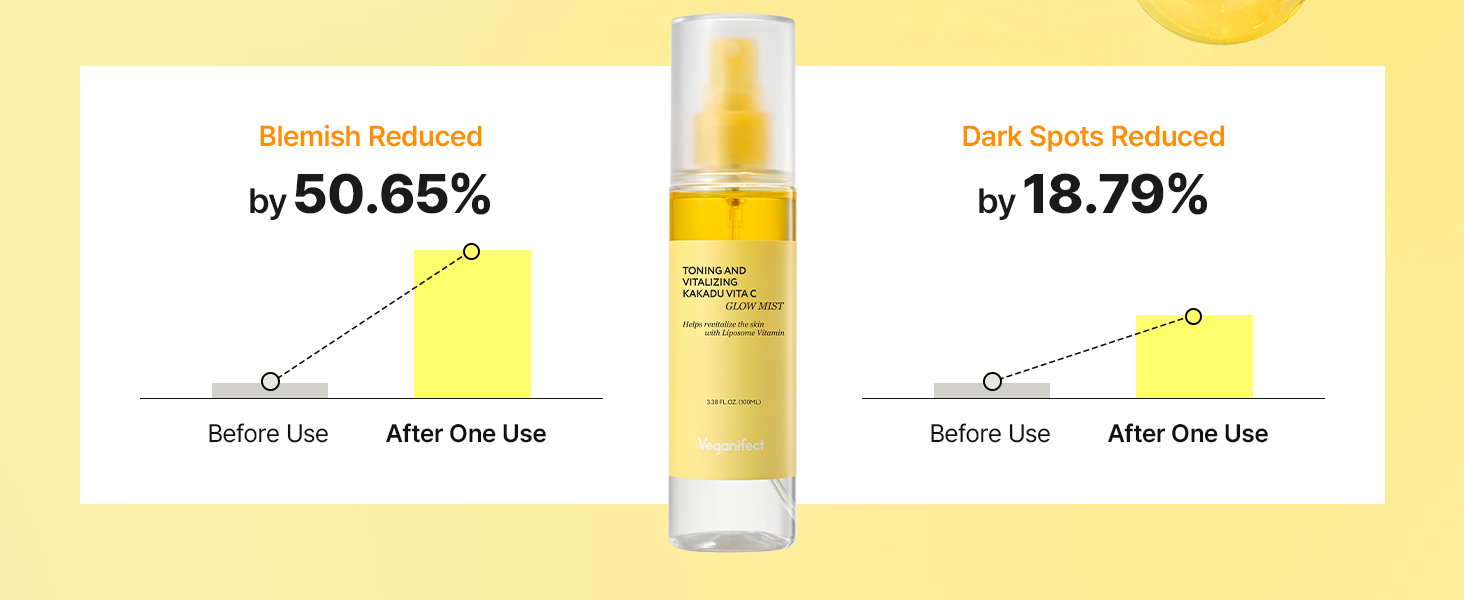 - PROVEN RESULTS - Clinical trials have proven significant improvements with VEGANIFECT Vitamin C Glow Mist : +50.65% Dark Spot Reduction, +3.94% Skin Tone Improvement, +15.46% Blemish Reduction. Individual results may vary.