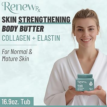Collagen + Elastin Skin Strengthening Body Butter for Dry Skin - Hydrating & Firming Skin Care, Vegan Skincare, 16 oz
