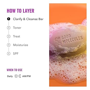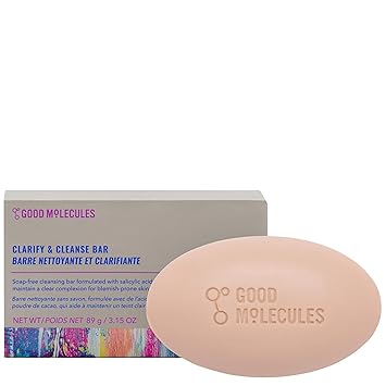 Good Molecules Clarify and Cleanse Bar - Soap Free Bar with Salicylic Acid, BHA for Skin Tone Balancing and Cleansing - Body and Facial Cleanser, Skin Care for Face