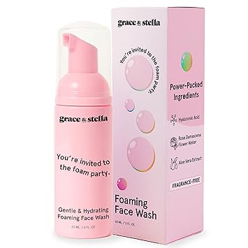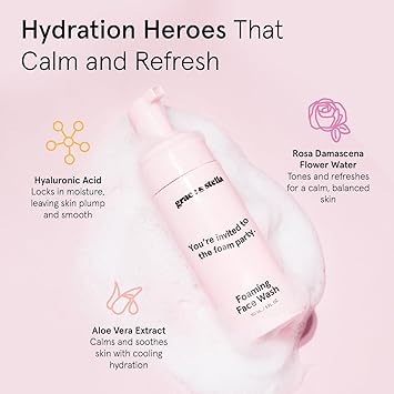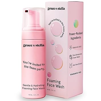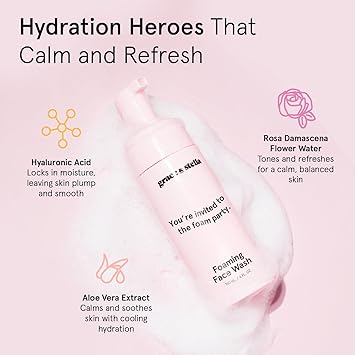 grace & stella Award Winning Hydrating Face Wash (150ml) - Gentle Foaming Facial Cleanser with Hyaluronic Acid, Rose Water, Aloe Vera - Moisturizing Cleansing Foam for Normal to Very Dry Skin - Vegan