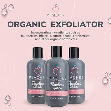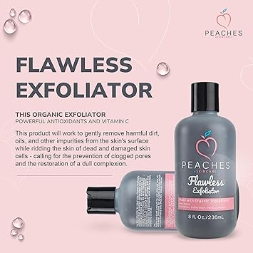 - Facial Exfoliator - Deeply cleanse and exfoliate your skin by using the Peaches’ Exfoliating Face Scrub. This 8 oz bottle of face exfoliant is created from ingredients that allow oxygenation and cleansing of all skin types.