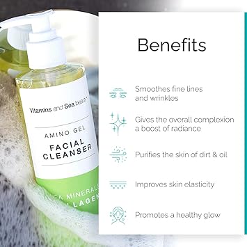 Amino Gel Facial Cleanser with Sea Minerals & Collagen - Radiance, Oil Control, and Elasticity - Vegan, Paraben-Free, 8 fl oz