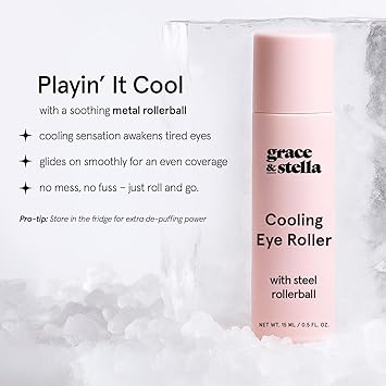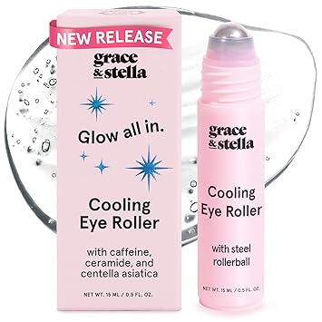 grace & stella Under Eye Brightener with Cooling Metal Rollerball - Ceramide & Caffeine Eye Cream for Puffy Eyes - Travel Size Toiletries - Vegan Skincare (15ml / 0.51floz)