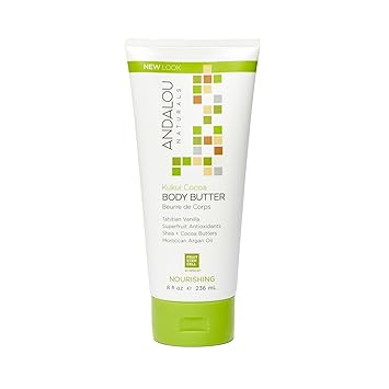 Andalou Naturals Body Butter, Kukui Cocoa Nourishing Body Cream, 8 Oz, Shea Butter, Cocoa Butter & Argan Oil for Dry Skin, Vegan