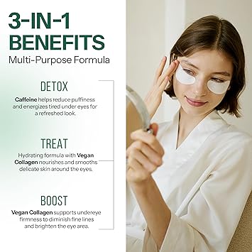 - 𝐀𝐧𝐭𝐢-𝐀𝐠𝐢𝐧𝐠 𝐁𝐞𝐧𝐞𝐟𝐢𝐭𝐬: Advanced eye bag patches with concentrated collagen enhance skin elasticity and minimize signs of aging. Our under-eye masks for puffy eyes promote firmer, more youthful-looking skin with consistent use, giving you a revitalized look.