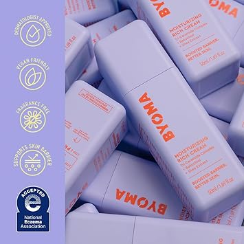 BYOMA's deeply moisturizing Rich Cream melts into skin to intensely hydrate improve texture for plump, supple results a stronger skin barrier.