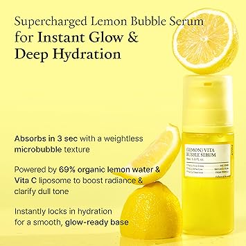 FULLY Lemon Vita Bubble Facial Serum, 69% Organic Jeju Lemon Water & Vitamin C, Instant Glow & Hydration, Niacinamide Glutathione for Radiance & Tone Refining, Vegan Korean Skincare, 3.21 fl.oz