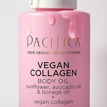 - INTENSE HYDRATION & SKIN FIRMING - Experience Pacifica Vegan Collagen Body Oil, a luxurious moisturizing treatment infused with plant-based collagen to deeply hydrate, plump, and visibly firm dry, dull, or aging skin. Powerful vegan collagen peptides help enhance skin elasticity, delivering smoother, younger-looking skin instantly. This lightweight oil absorbs quickly, locking in essential moisture without leaving behind greasy residue, for soft, supple skin you'll love every day.
