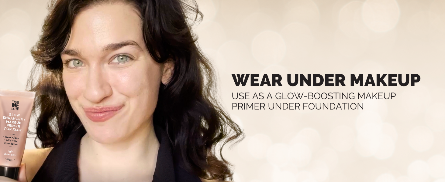 Elizabeth Mott Thank Me Later Glow Enhancer & Primer - Illuminating Makeup Base & Highlighter for Radiant Skin - Lightweight, Long-Lasting, Vegan & Cruelty-Free, Sheer Light Glow Shade, 30g