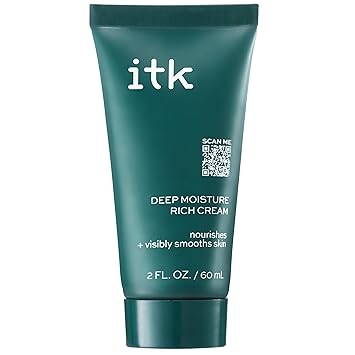 Experience the ultimate hydration with ITK Deep Moisture Rich Cream for Women. This 2 oz cream is specifically formulated to deeply moisturize and nourish your skin, leaving it feeling soft, supple, and rejuvenated. Infused with hyaluronic acid and other powerful ingredients, this vegan formula from works wonders on dry or dehydrated skin. Use it as a daily moisturizer or as a night cream for intense overnight hydration. With regular use of our trusted skincare product, you'll notice a visible improvement in the texture and appearance of your skin - say goodbye to dullness and hello to radiant glow! Trust in ITK Skincare for all your skincare needs.