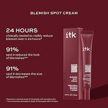 ITK Skincare Salicylic Acid Acne Spot Treatment for Face, Back & Body - Fast Active Acne Relief - Pimple Cream for Acne Prone Skin - Clear Blemishes Fast with Tea Tree Oil - 0.5oz