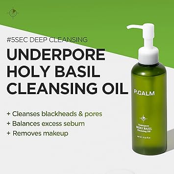P.CALM Underpore Holy Basil Cleansing Oil - Holy Basil & Tea Tree for Deep Pore Cleansing, Blackhead Removal, and Makeup Removal, Korean Skincare (190ml / 6.42 fl.oz)