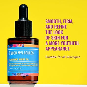 Unveil a radiant and youthful complexion with the Good Molecules 1% Retinol Night Oil. Embrace the power of retinol and the nourishment of plum oil! Help smooth, firm, and refine the look of skin for a more youthful appearance. Powered by 1% potent retinol in a base of nourishing plum seed oil, this hydrating serum helps to reduce the appearance of fine lines, wrinkles, lack of elasticity, and uneven skin tone.