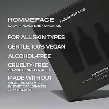 HommeFace Men’s Daily Trio 3-Step Daily Routine Set with Face Wash, Herbal Spray Toner & Moisturizer - Korean Skincare Technology with CICA, Tea Tree Leaf & Witch Hazel Extracts, for All Skin Types