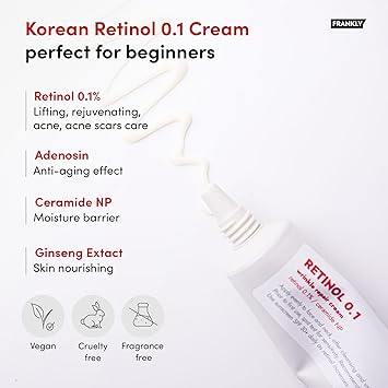 FRANKLY Retinol 0.3% Cream, 0.7 fl oz - Intensive Retinol | Night Cream | Ceramides & Natural Ginseng | Anti-aging, Wrinkles Care, Reduces Congestion and hyperpigmentation | Korean Skin Care