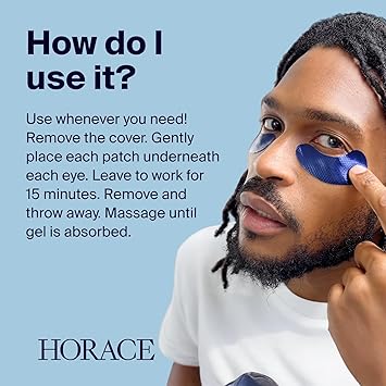 HORACE Anti-Fatigue Under-Eye Patches for Men - Dark Circle and Puffiness Reduction - Moisturising & Refreshing Hydrogel Treatment - Vegan and Silicon-free Skincare - Unscented, Pack of 5 Pairs