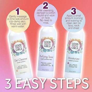 Good For You Girls Three-Step Skincare Gift Set - Cleanser, Toner & Moisturizer for Girls to Teens, Safe, Natural, Plant-Based ingredients. Vegan & Gluten-Free | 3 Piece, 4 oz ea.