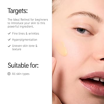 - INTRO TO RETINOLS - The ideal Retinol for beginners to introduce your skin to this powerful ingredient; Specially formulated with a slow-release, less irritating form of Retinol, the skin-renewing serum targets the first signs of ageing and hyperpigmentation; Working to visibly improve the appearance of fine lines, wrinkles and overall skin tone and texture with continued improvement over time.