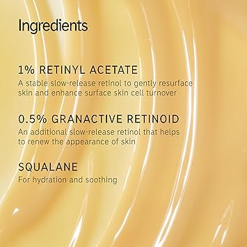 - POWERFUL INGREDIENTS - Hero ingredient Retinyl Acetate is a derivative of vitamin A and works to gently resurface and enhance surface skin cell turnover, improving the appearance of fine lines, wrinkles, and hyperpigmentation; This form of slow-release Retinol has been specifically chosen as a gentler anti-ageing serum option; The added Squalane, a key antioxidant ingredient, provides additional hydrating and soothing benefits whilst helping to smooth the skin's appearance.