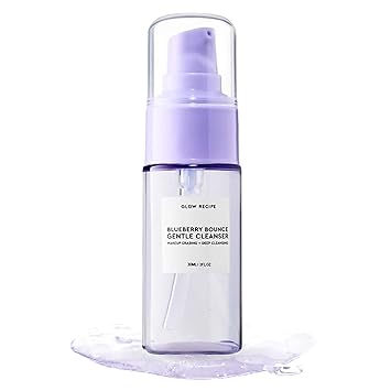 Glow Recipe Blueberry Bounce Exfoliating Face Wash, Travel Size - Foaming Facial Cleanser, Makeup Remover & Clarifying Mask - Hydrating Hyaluronic Acid & Gentle AHA for Sensitive Skin - Vegan, 30ml