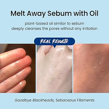 - [Perfect Make-up & Blackhead Remover] This make-up cleansing oil cleverly clings to impurities, blackhead, whitehead and sebum inside the pores without any irritation. Easily removes daily makeup(sunscreen, foundation, eye makeup). It perfectly cleanses make-up without greasy residue and does not need 2nd cleansing