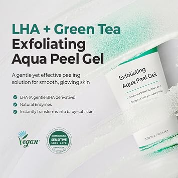 MOTHER MADE LHA Green Tea Exfoliating Aqua Peel Gel, Deep Pore Face Exfoliant, Gentle Facial Exfoliator, Dead Skin Remover, Natural Cellulose for Peeling, Vegan, Korean Skincare (100ml / 3.38 fl.oz)